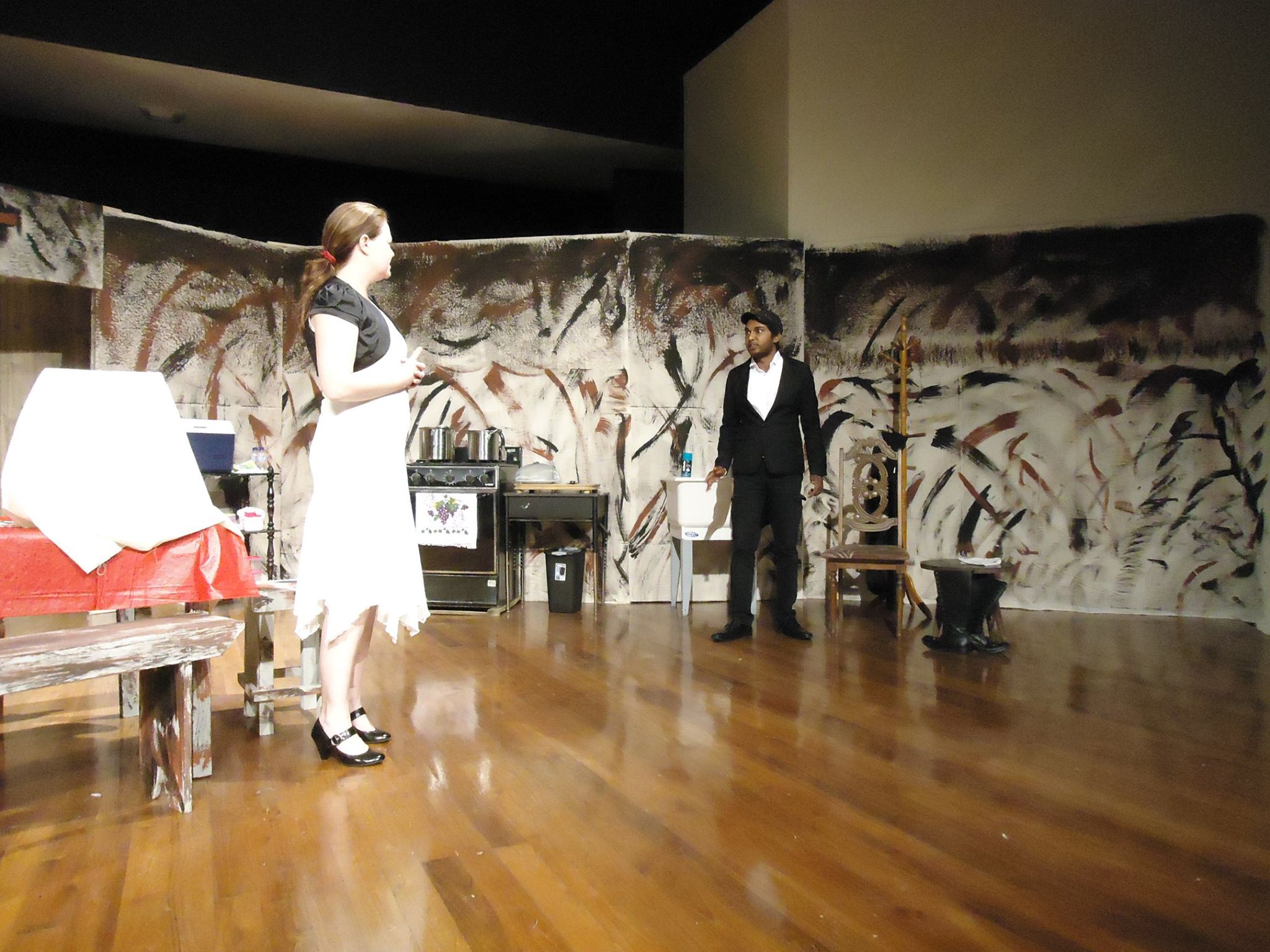 Having spoken enough about my dislike for the use of language, I would now focus on other aspects of the performance (keeping in mind that the inconsistency of the use of language bothered me throughout the play). “Jean” played by Vedesh Nath maintained a monotonic speech pattern for the entire performance with the only variation coming via changes in volume, and the speed of delivery of his lines. I hope in future performances he would explore the use of tones and intentions/motivations for his dialogue and stage movement since his interaction with “Miss Julie” and “Christine” and theirs with him looked forced at times. Maybe work-shopping with characterization, trust and chemistry building exercises would help improve these forced moments.