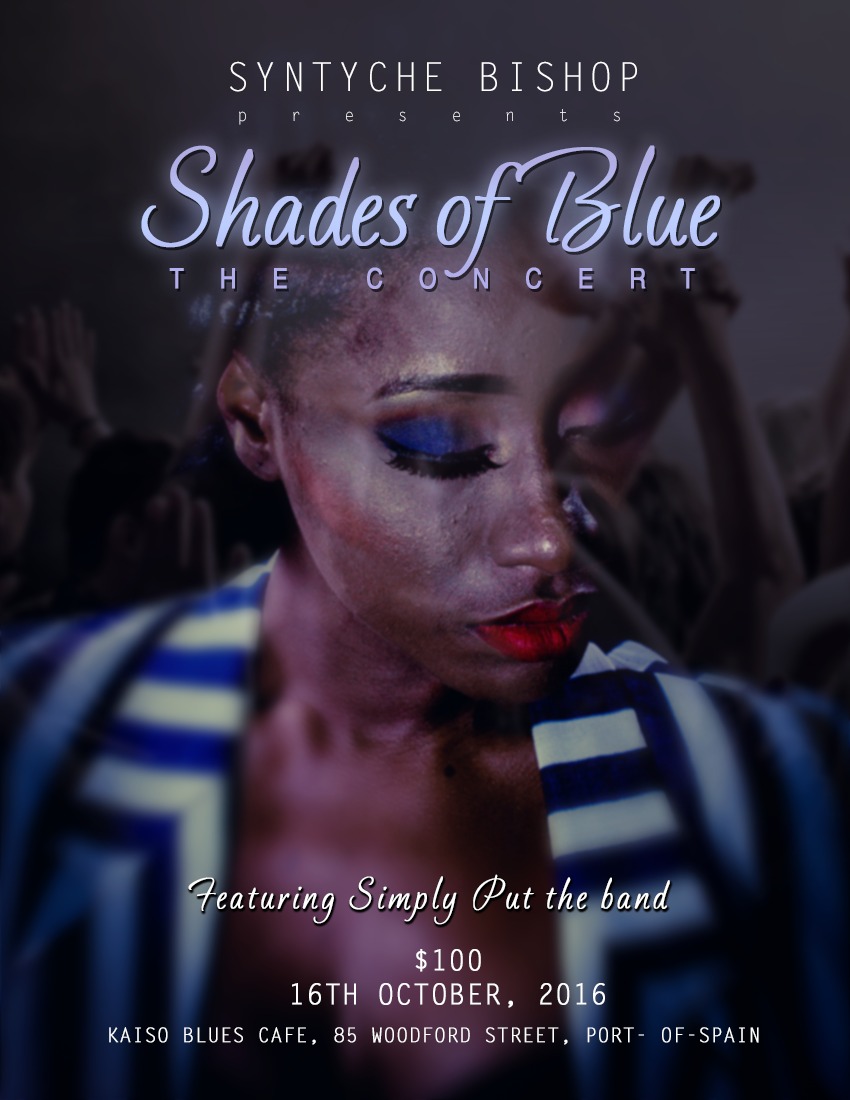 “There are a few reasons why I chose Shades of Blue as the name of the concert. First of all, my birthstone, sapphire, is blue. Also, blue has a lot of powerful meanings, including strength. Each shade of blue represents a different genre of music, so there’s something in there for everybody. It showcases my versatility as well as a vocalist, so it shows that I am able to do a lot of different genres. You’re going get some soca, some reggae, jazz, pop and more. This is me in concert, it’s very intimate, close and very personal, so I’m just showcasing Syntyche as a vocalist.”