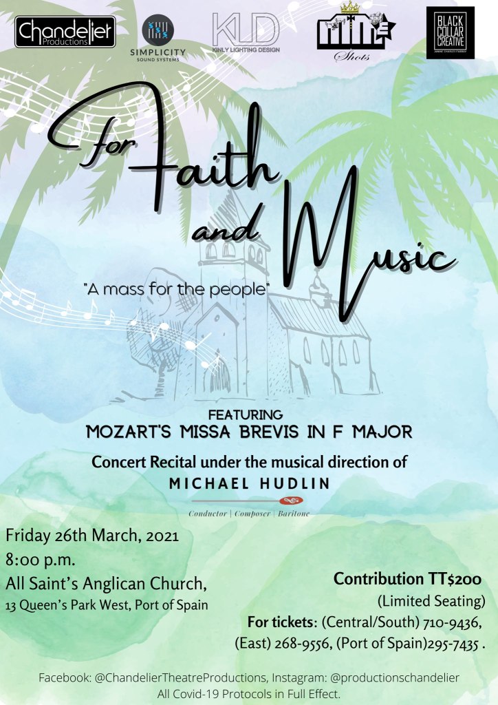 Seating for this concert recital will be limited at All Saints’ Anglican Church due to Covid-19 public health protocols, with “For Faith and Music: A Mass for the People” tickets available by calling (Central/South) 710-9436, (East) 268-9556, (Port-of-Spain) 295-7435. For more details visit events.jewelboxbyjr.com, Facebook search: @ChandelierTheatreProductions, or on Instagram: @productionschandelier.