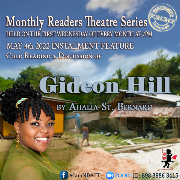 This evening, NDATT’s Playwrights Workshop Trinbago features the reading of Gideon Hill by Ahalia St Bernard for their May instalment. The series will continue online in light of the precautionary measures implemented as a result of the COVID-19 pandemic. The reading will take place via Zoom meeting only, TODAY (May 4) at 7 PM (AST GMT-4).