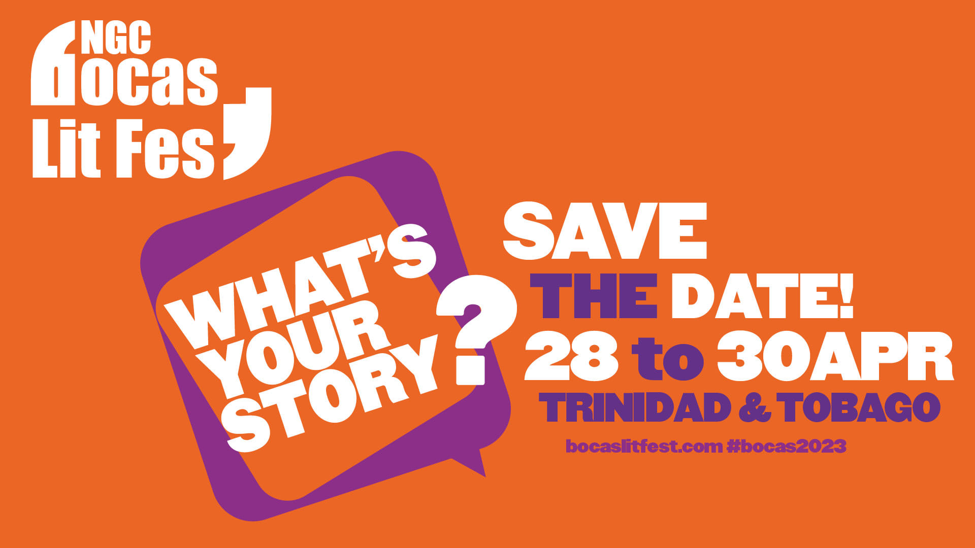 “What’s your story?” is the theme and tagline of the 2023 NGC Bocas Lit Fest, Trinidad and Tobago’s annual festival of books and writers. Running from Friday 28 to Sunday 30 April, the largest annual literary event in the Anglophone Caribbean — now in its 13th year — returns with a fully in-person programme, after three years of running virtual, online festivals in response to COVID-19.