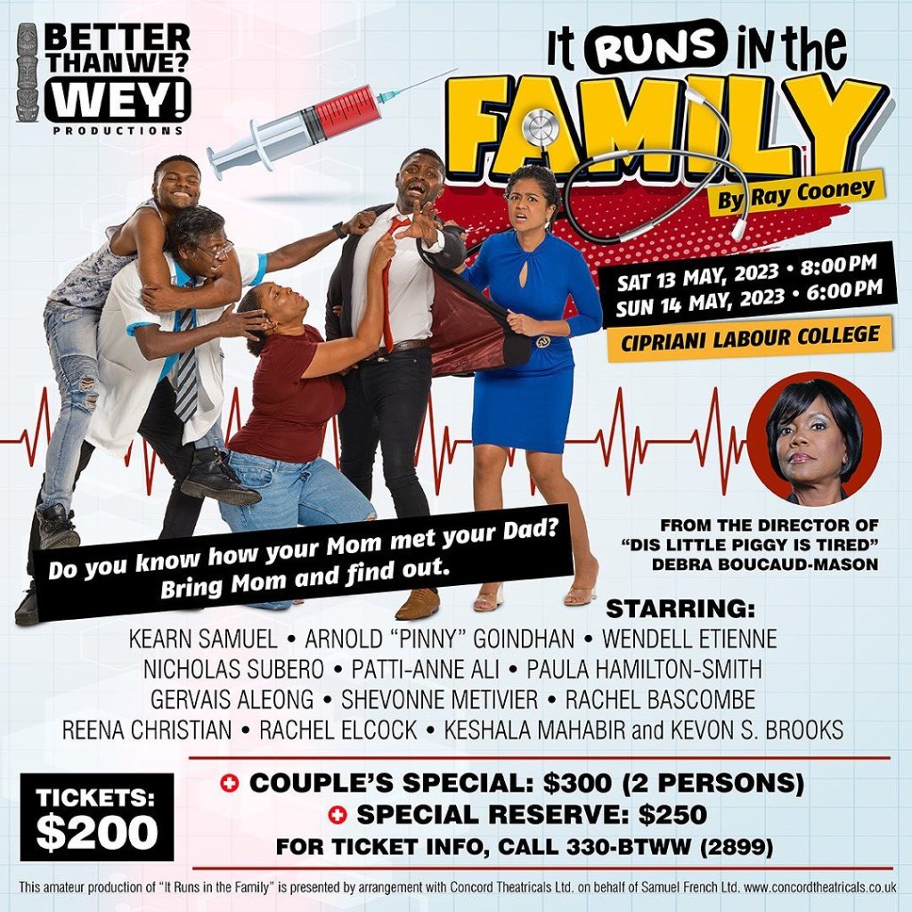 Better Than We Wey’s production of It Runs in the Family continues 13th – 14th May at the The CLR James Auditorium at The Cipriani Labour College.