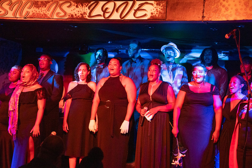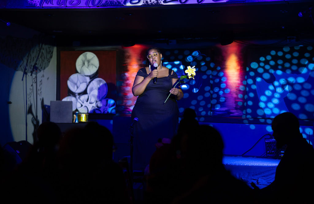 Khadija Moses’ performance of “Goodnight my Someone” from The Music Man also stood out for me, not only because of her vocal delivery but also because The Music Man was the first production I ever performed in, so I have some personal connection to the material. Additionally, Tracy Tuitt’s rendition of “Pretty Funny” from Dogfight made it difficult to take your eyes off of her. She not only delivered the song with heartbreaking passion, but also told the character’s story through the use of her mannerisms. The highlight of the night for me however was the finale, where the entire cast encircled the audience to sing “Sunday” from Sunday in the Park with George, which transported me from Kafe Blue into a paradise beyond words.