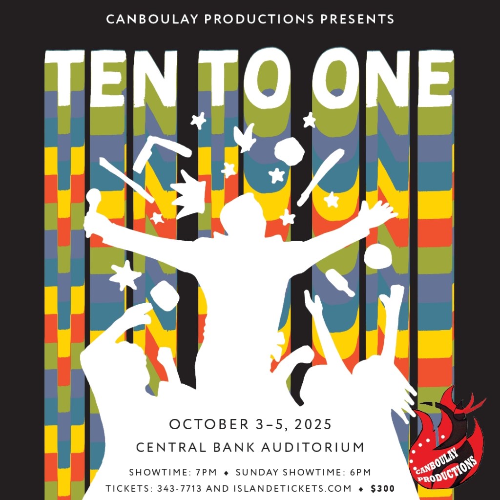 Canboulay Productions will be staging Ten To One again on October 3rd, 4th, and 5th, 2025 at the Central Bank Auditorium. For more information, visit them on Facebook and Instagram, or contact them at 868 343 7713, or on IslandETickets.
